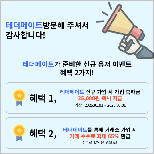 저희 테더메이트를 통해서 새롭게 거래소 가입해 주신